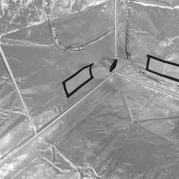 Cuenta con dos entradas de aire en la parte inferior, dos salidas de aire en la parte superior y mangas para cables. Además posee cuatro ventanillas para aumentar el flujo de aire dentro del indoor.
